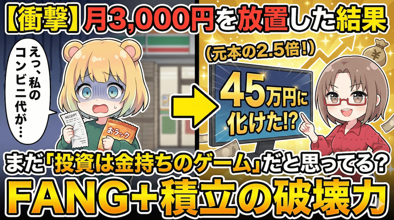 今回は、話題の『iFreeNEXT FANG+インデックス』の過去の実際の数字から積み立て結果をシミュレーションします。この数字を見れば、『資金力がないから投資しない』という選択が、いかに機会損失であるかが分かるはずです。