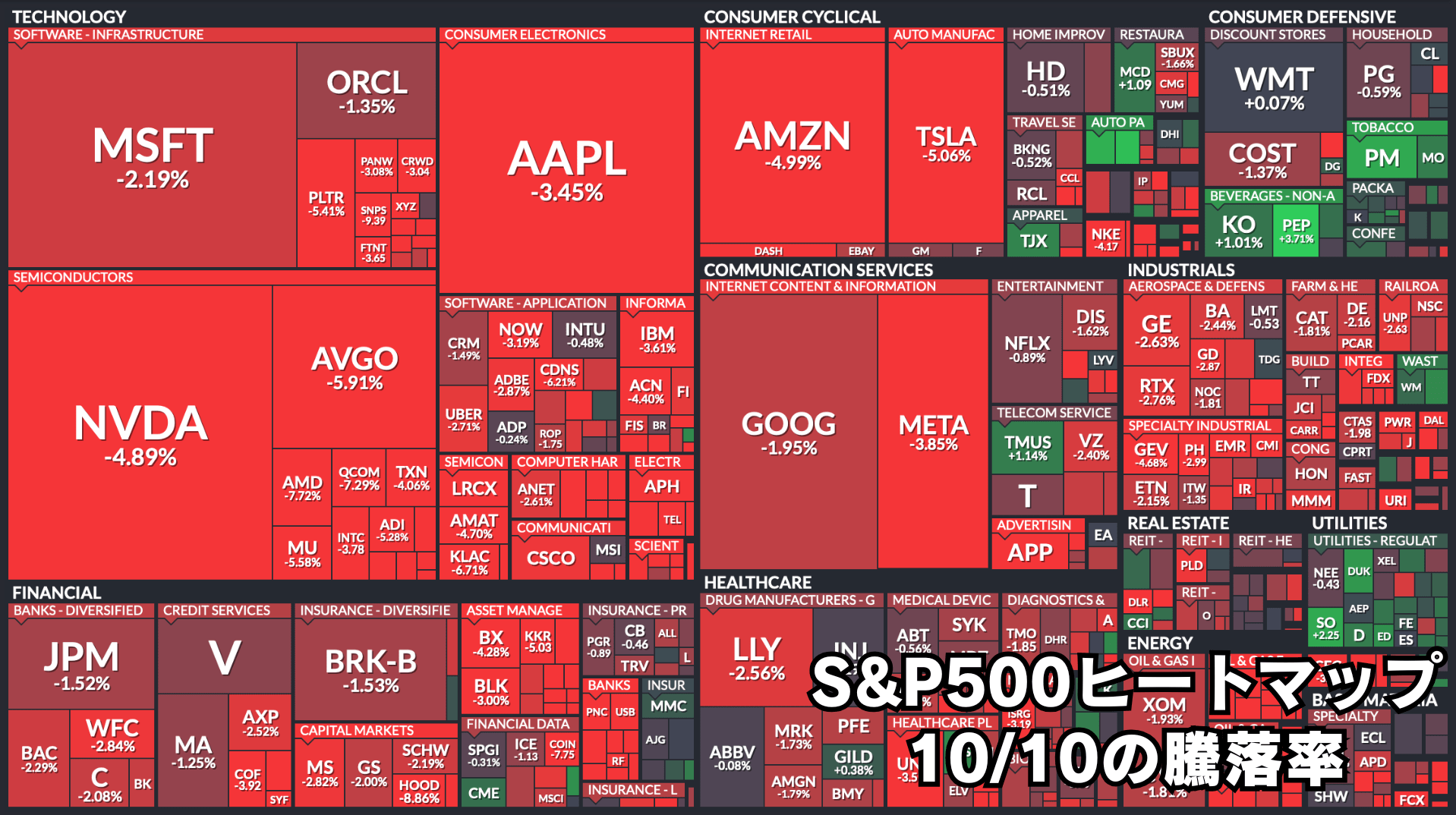 昨夜(10月10日)、米国株式市場は今年4月以来となる大幅な下落に見舞われました。S&P500指数は前日比▲2.7%、ナスダック総合指数は▲3.5%の急落です。