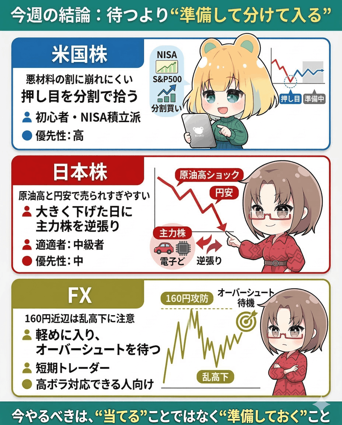 3月16日からの1週間を考えるうえで、投資家がいちばん陥りやすい罠があります。それは『中東情勢がいつ片付くか(戦争が終わるか)』を当てにいこうとすることです。