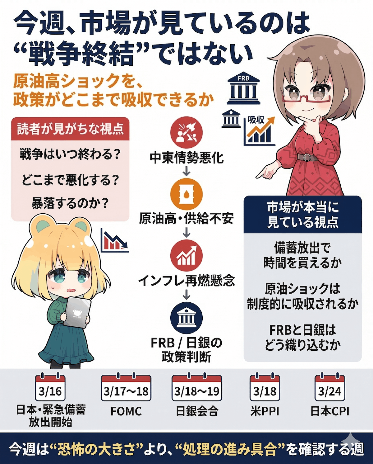3月16日からの1週間を考えるうえで、投資家がいちばん陥りやすい罠があります。それは『中東情勢がいつ片付くか(戦争が終わるか)』を当てにいこうとすることです。