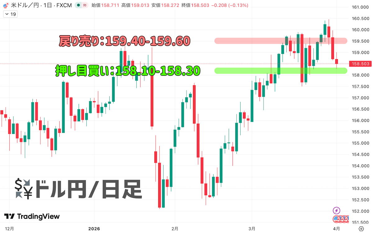 株が方向感を探る中、為替(ドル円)相場は今のマーケットの迷いを非常に正直に映し出しています。4月1日の東京市場では158円後半で売買が交錯。朝方に158円半ばへ下げたあと、一時159円台まで買い戻されるなど神経質な展開です。