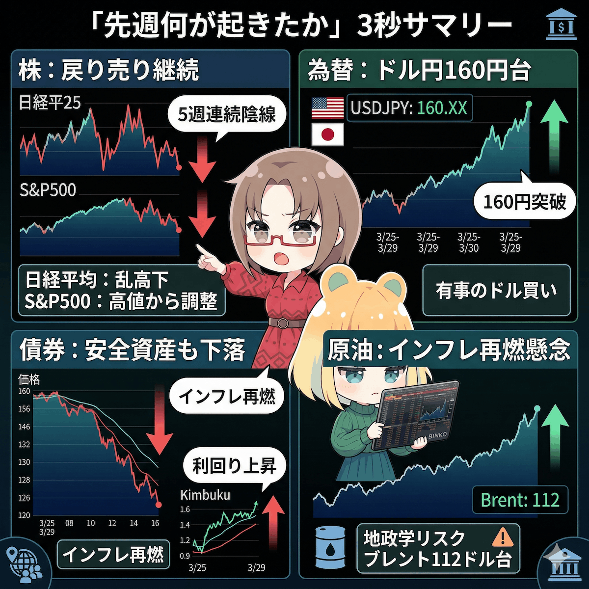 日経乱高下・ドル円160円台へ!下落トレンド継続でも、4月反転はあるのか?3月30日〜週の相場戦略