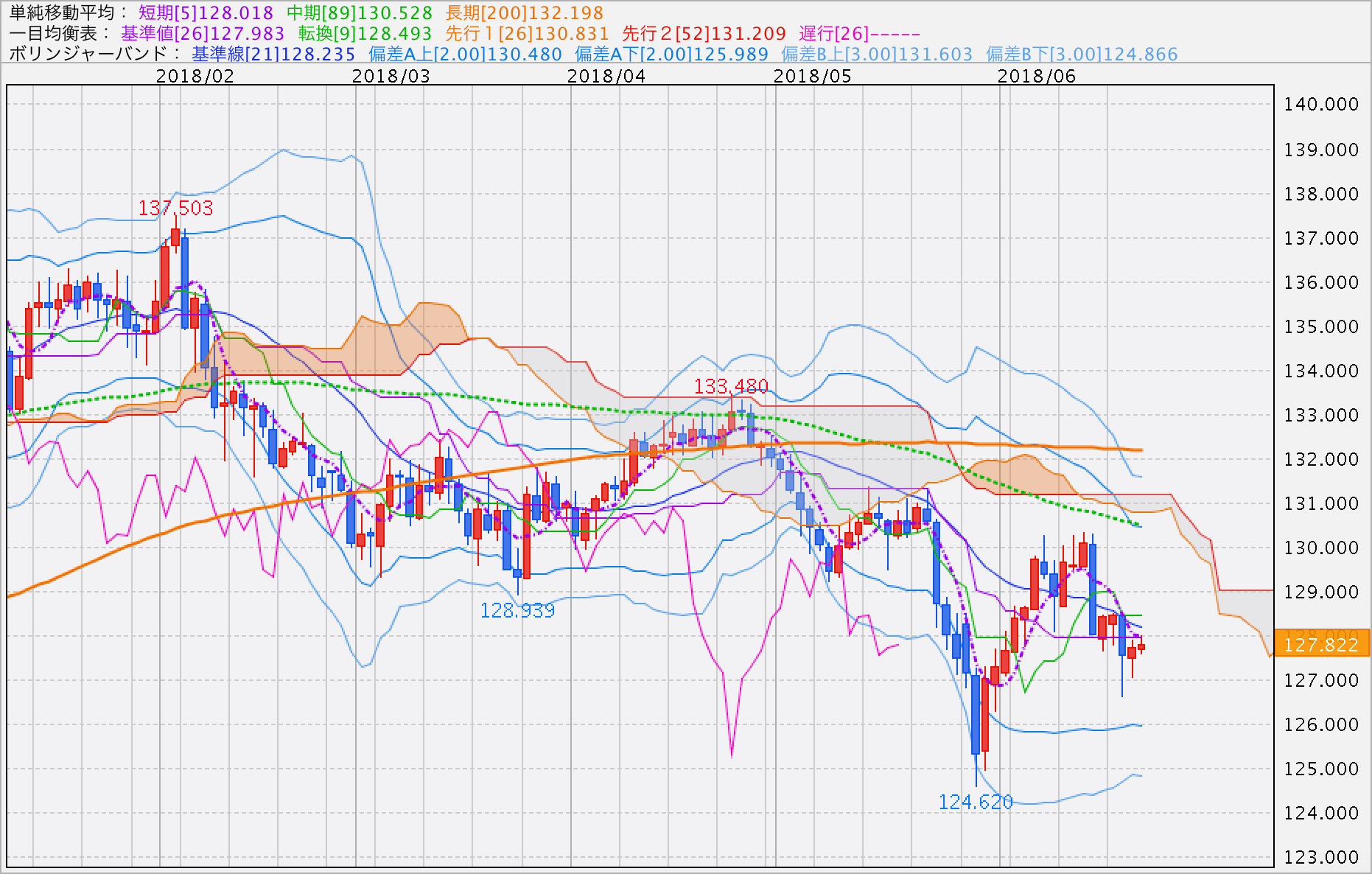 現状で127円割れが壁となっていますので、デイトレなら127.00円ライン手前でポジションの一部を利食いするのはアリでしょう。127円割れとなれば一段の下押しがありそうですから、勢いと状況に応じて利食いかホールドかを判断しましょう。