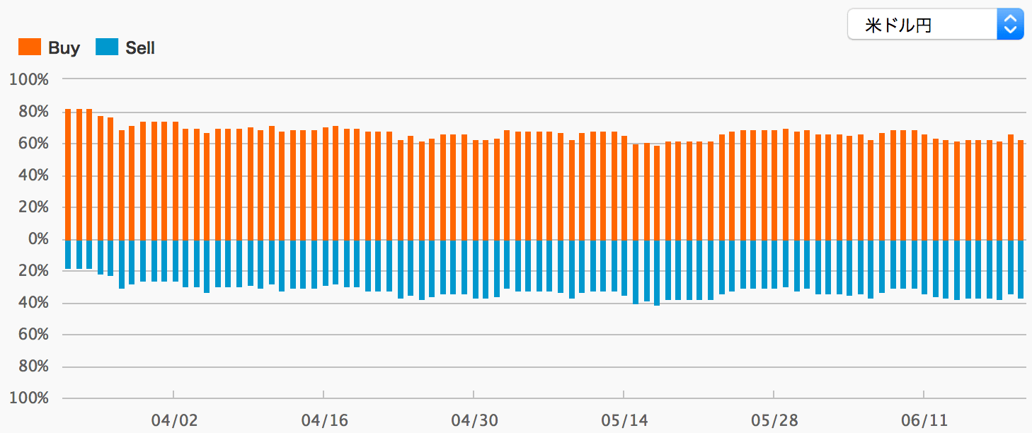 一昨日、109円台をつける場面では、しっかり売りポジションを手仕舞って買いポジションの比率が増えましたが、昨日110円台に再度上値を伸ばしてくると売りポジが増えると。もう、今年はこの増減を見ているだけで、どれだけ勝てたんだろうという話。今週もゆきママはいきなりドル円のデイトレで引っかかってしまいましたから、もうミセスワタナベポジションを参考にしております|_・)ジーッ