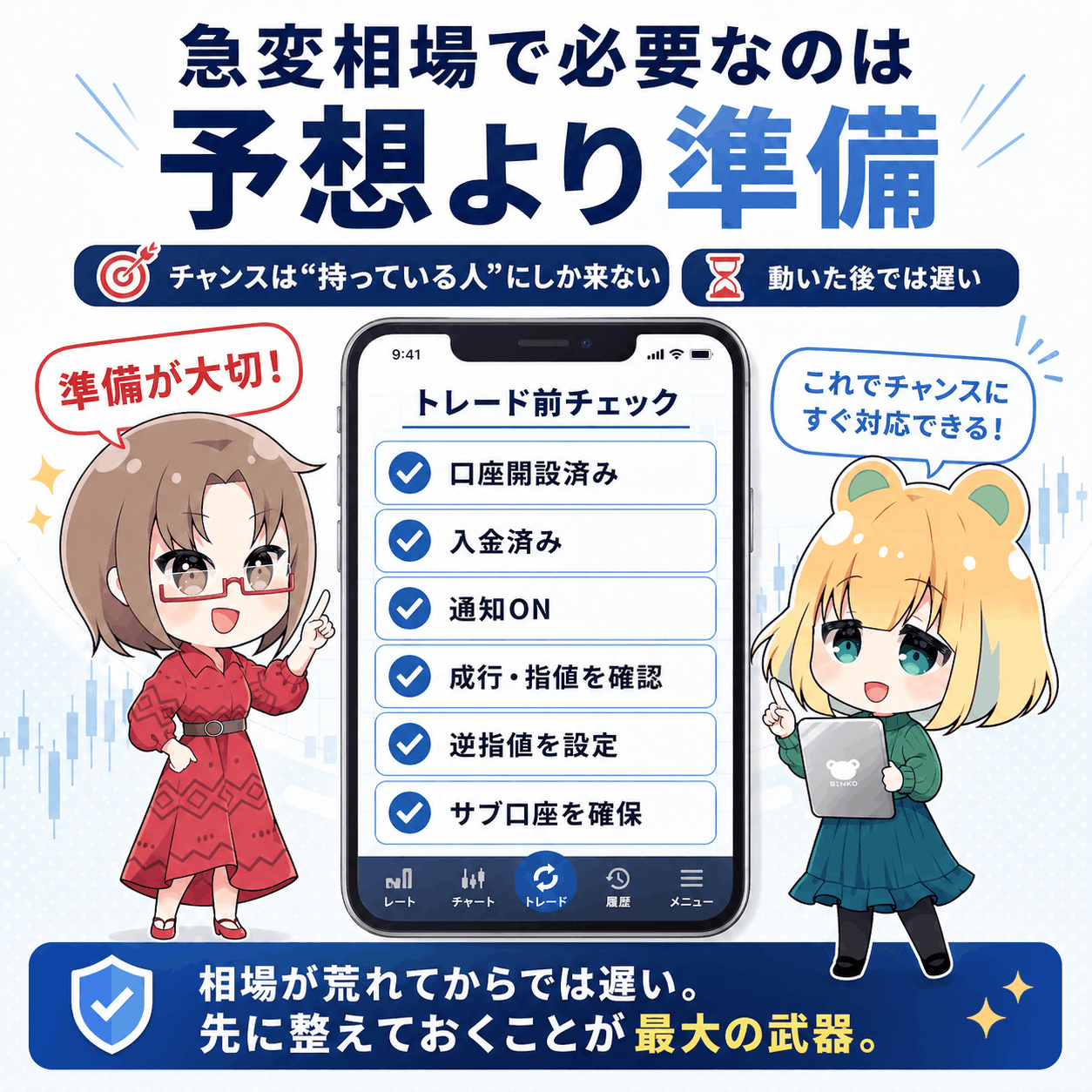 だからこそ、相場が荒れてから慌てて調べるのではなく、先に口座を用意しておくことが重要です。