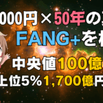 ▶︎月3,000円×50年積立の中央値は100億円?FANG+の『現実リターン』を徹底検証!少額投資で億り人は本当か