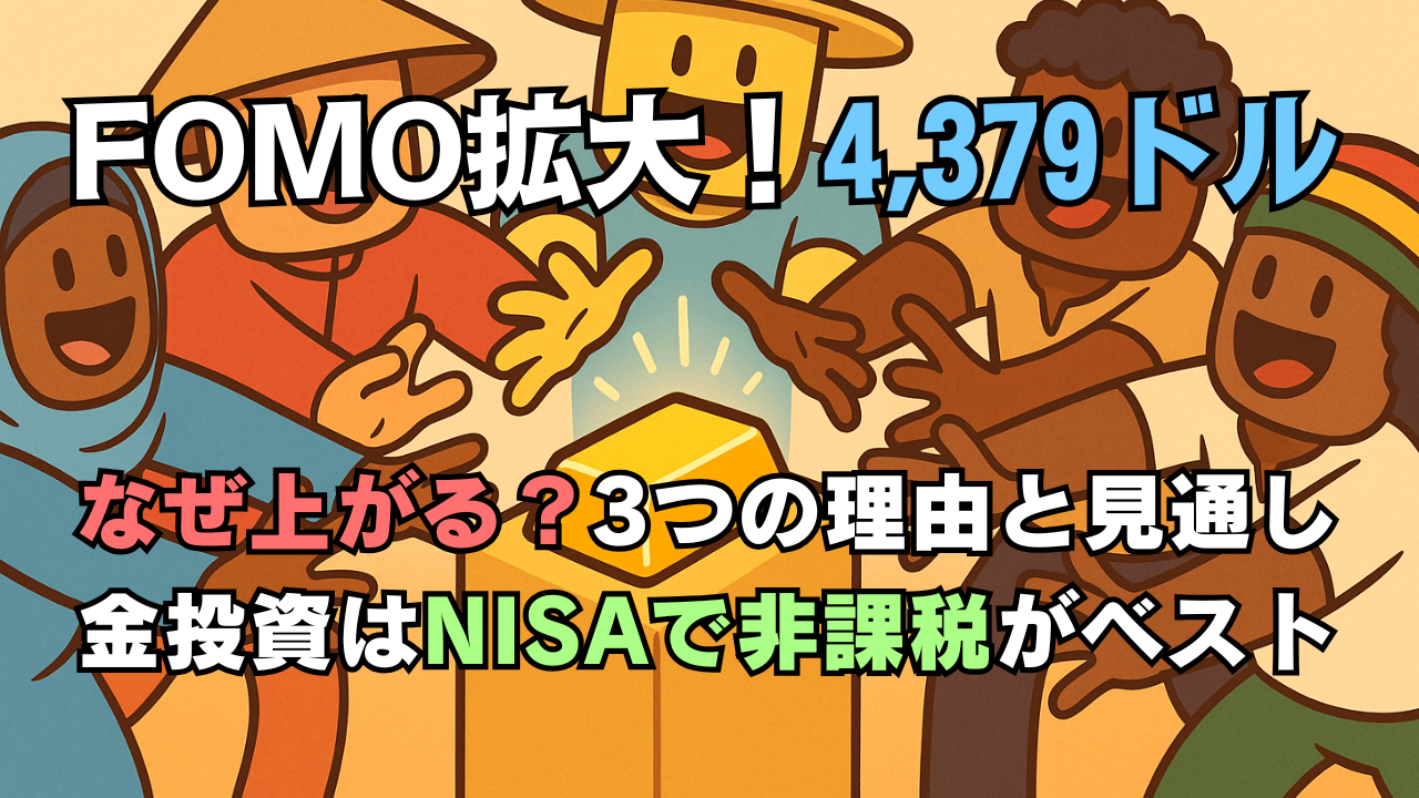 NISAでコツコツ非課税ゴールド投資|金価格4,379ドルで史上最高!高騰の3理由と今後の見通し