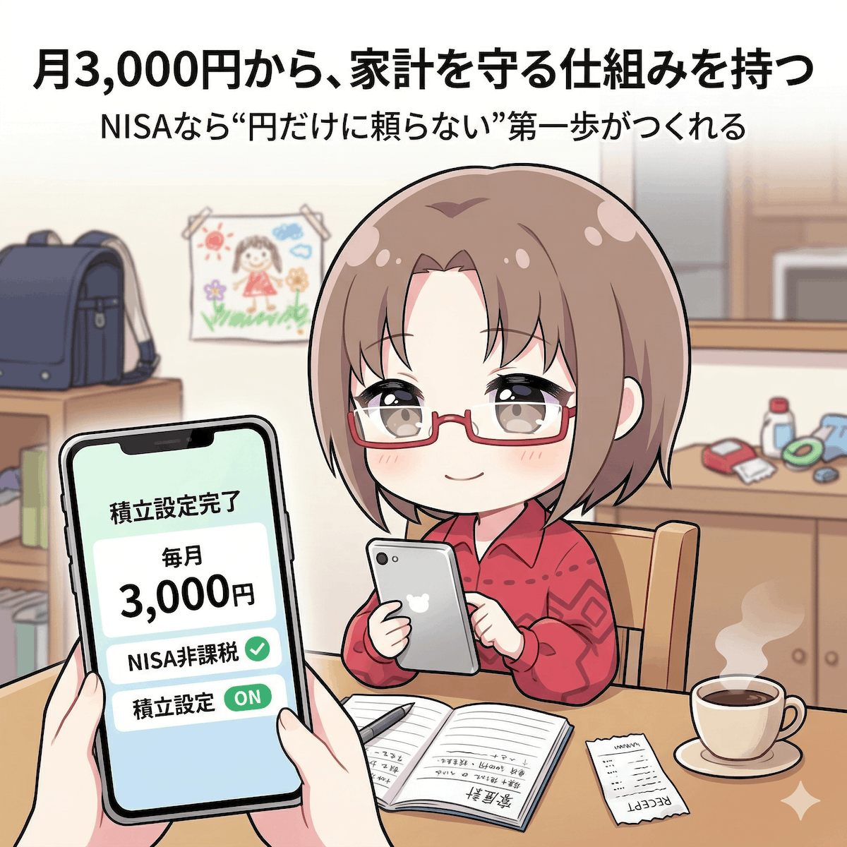 3,000円は、外食1回分で消える金額かもしれません。カフェ代の積み重ねかもしれません。でも、その3,000円を『使ったら終わりのお金』ではなく、NISAの積立に回すとどうなるでしょうか。