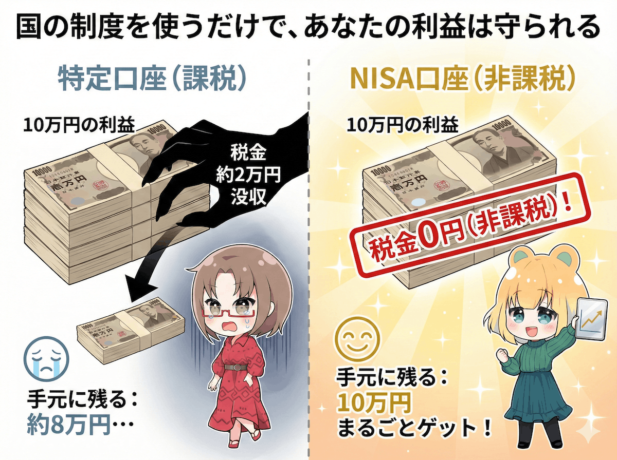 ❌通常口座:10万円儲かっても、手元に残るのは約8万円(2万円没収😭)