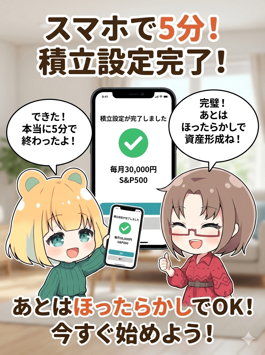 投資でいちばん損するのは『良い話を読んで満足して、何も始めないこと』です。市場は待ってくれません。口座開設だけ先に終わらせて、あとで積立設定でOK。