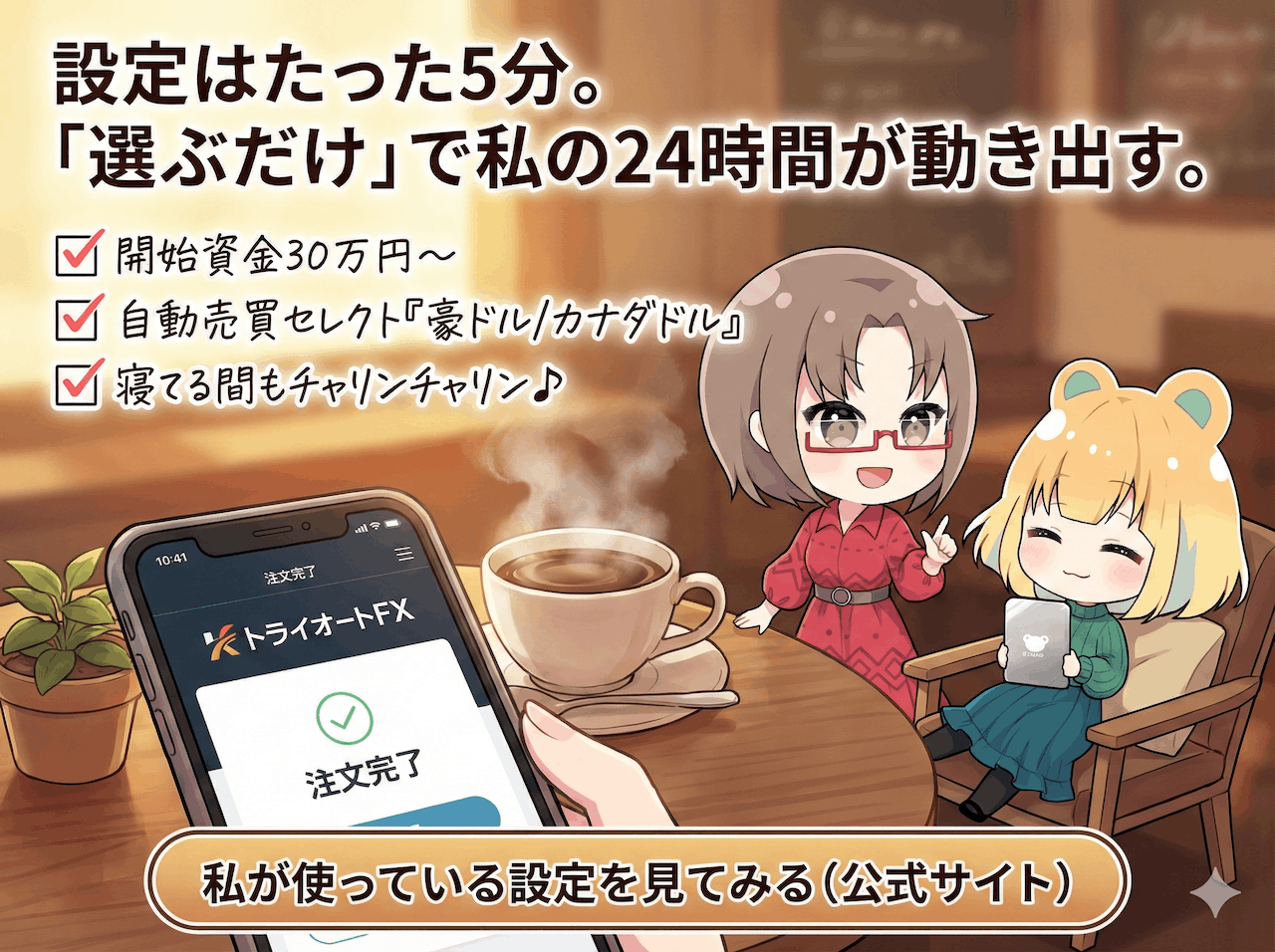 →PR【2025年最新】トライオートFXは『選ぶだけ』で24時間自動売買|手数料0円&1,000通貨から